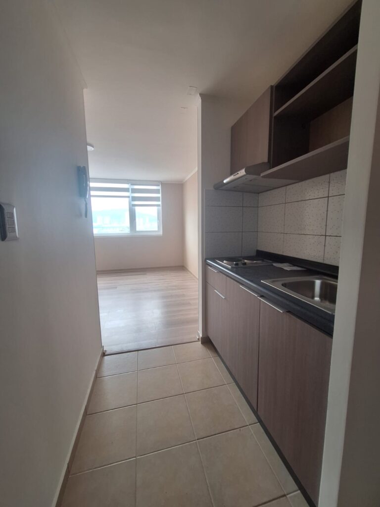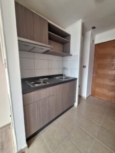 Homestudio cuenta con cocina amoblada y equipada (encimera y campana eléctrica), conexión a lavadora, espacio living dormitorio, clóset y baño.