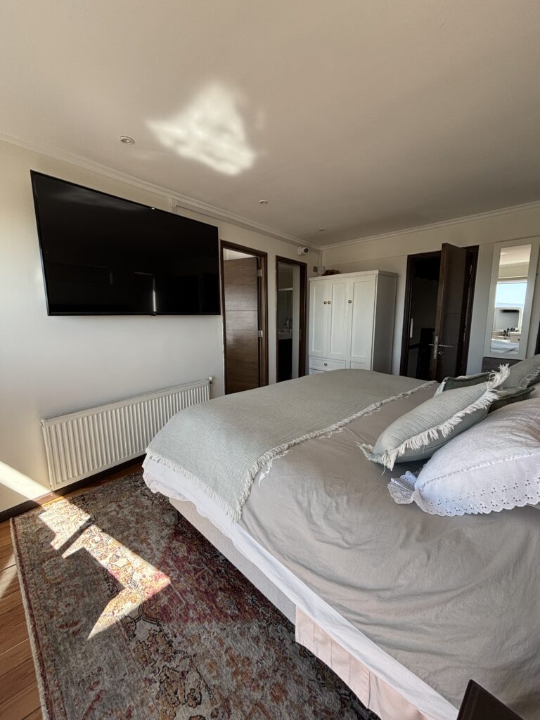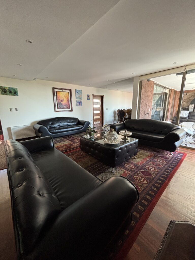 Cuenta con estacionamiento para dos vehículos, calefacción central, riego automático y sistema de 16 cámaras.