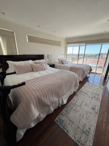 -Nivel 2: Dormitorio principal con walking clóset, baño en suite, acceso a dormitorio secundario y terraza, 2 dormitorios con clóset, 1 baño completo y sala de estar.