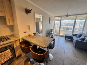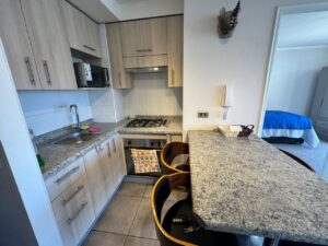 Departamento, estilo mariposa, cuenta con 2 dormitorios, 2 baños (ambos en suite), cocina americana con conexión a lavadora, living comedor, balcón, estacionamiento y balcón.